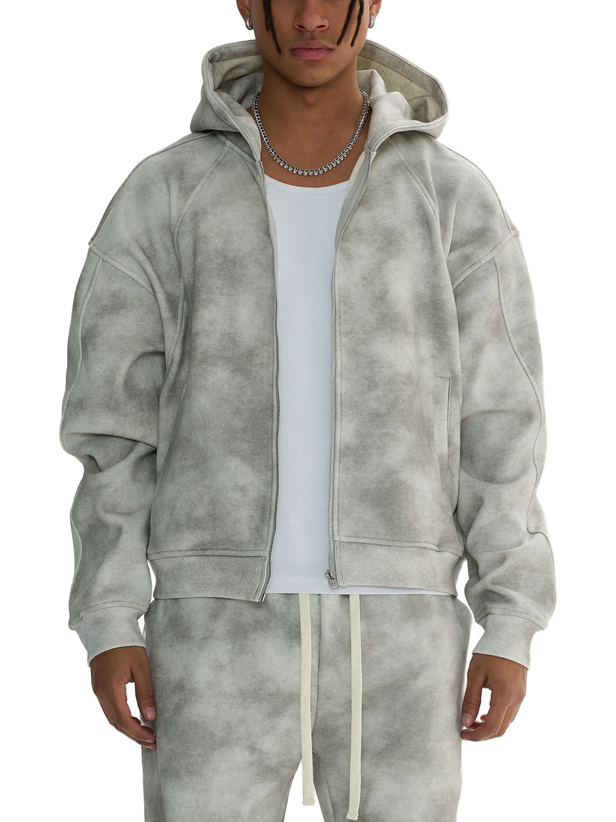 Dirty Washed Boxy Zip-up Fleece Hoodie